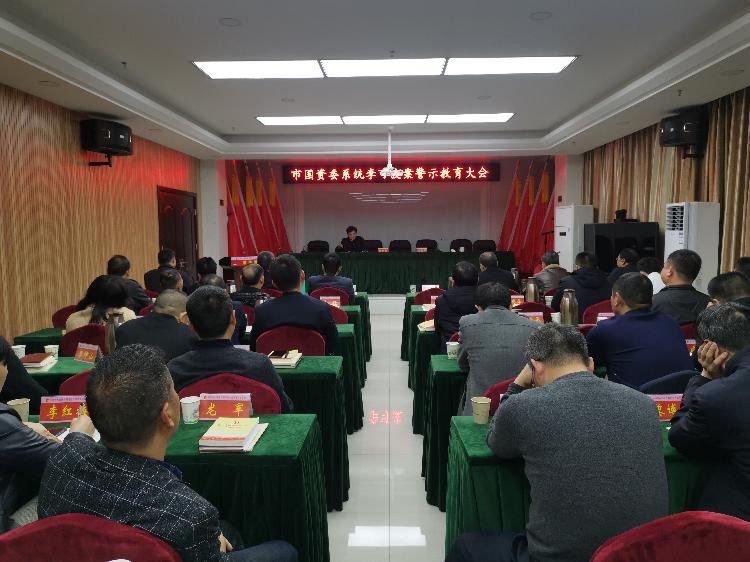 2019年11月26日,市国资系统召开“李可波案”警示教育专题会,我委党委书记、主任陈琪钢在会上宣读了市委开展警示教育和“以案促改”工作实施方案,传达了市委书记刘和生的讲话精神。