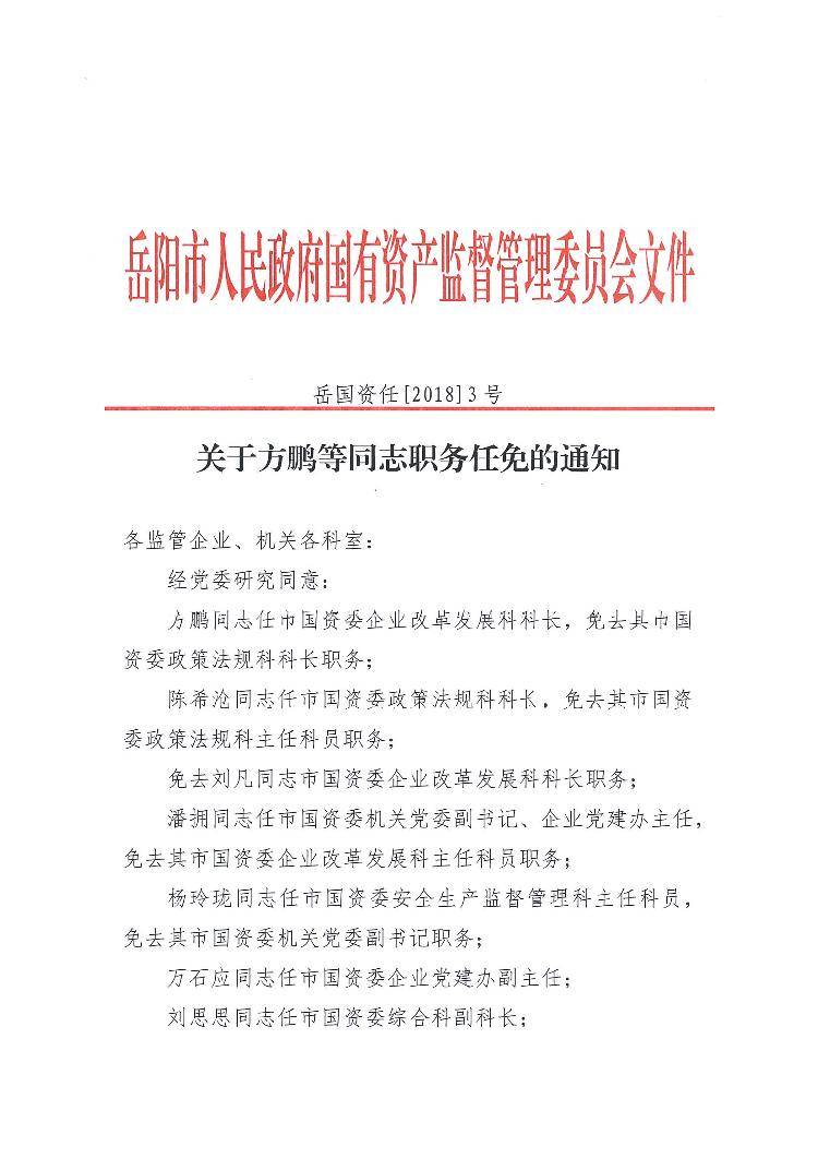 关于方鹏等同志职务任免的通知
