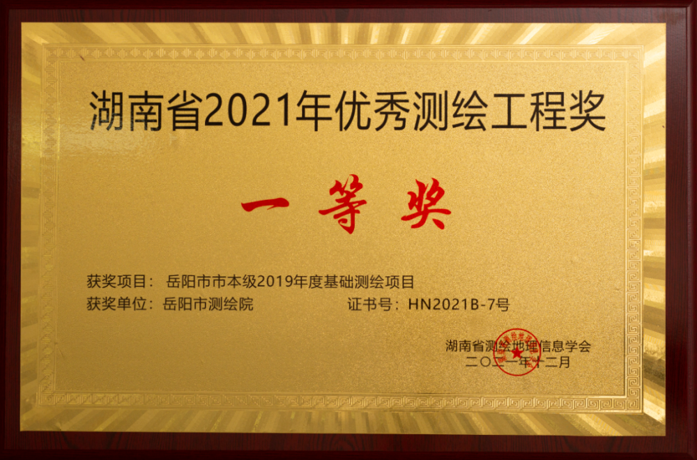 湖南省2021年优秀测绘工程奖一等奖
