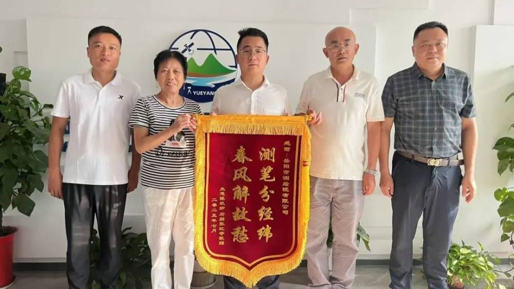 一面鲜红的锦旗,承载着沉甸甸的谢意,折射出国企心系民生、担当作为的动人风采。2025年7月17日,岳阳市民张女士与曾先生将一面绣有“测笔分经纬,春风解故愁”字样的锦旗专程送至我司,对我司在不动产测绘、确权登记业务中展现的高效专业服务表示高度赞誉和由衷感谢。